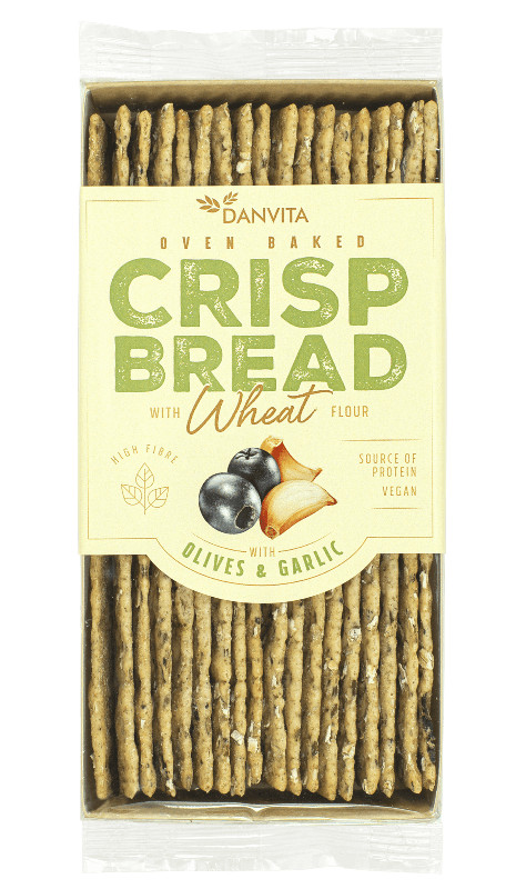 A Danvita olivás–fokhagymás lapkenyér a márka jól ismert, természetes és adalékanyagoktól mentes minőségét hozza. A ropogós kenyérrudacskák búzalisztből, olívabogyóval és fokhagymával készülnek, így minden falatban mediterrán ízvilág köszön vissza.