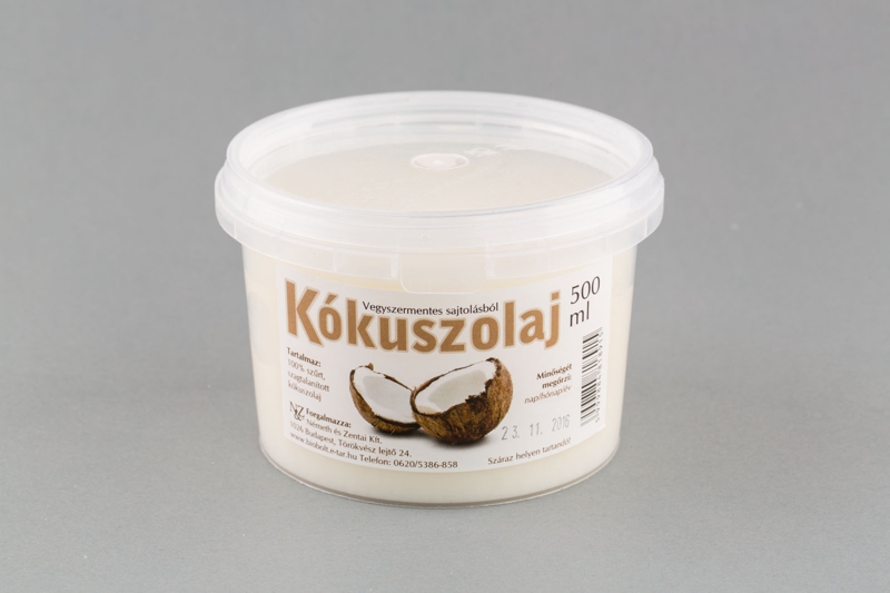 Bármilyen étel főzésénél bevethetjük ennek a különleges, sajtolásos eljárással készített alapanyagnak a használatát! Nem csak frenetikus ízhatást érhetünk el, hanem vásárlása nagyon kifizetődő is, ugyanis többszöri hevítés után is felhasználható. A kókuszolajjal nap mint nap ínycsiklandóan finom ételeket készíthetünk mellékíz nélkül. Megnevezése aktuális állagától is függ, ugyanis ha kókuszzsírról vagy kókuszolajról beszélünk, akkor ugyanarról az alapanyagról van szó. Érdekessége, hogy míg 24 °C fok alatt szilárd, addig e hőmérséklet felett folyékonnyá változik a halmazállapota. A N&Z Kókuszolaj sütésre és főzésre is alkalmas, íz- és illatmentes összetétel. Egy olyan nagyszerű alternatíva, amelyet a diétázók is nyugodtan fogyaszthatnak. Leginkább kelt és kevert tésztákhoz ajánlott. Arra figyeljünk, hogy a muffinok, kuglófok és a sütemények tésztájához ne forró, hanem cseppfolyós állapotában tegyük hozzá. Többszöri felmelegítés után is visszanyeri az állagát, így vásárlása kifizetődő választás. Előnye továbbá, hogy a megszokott ételeiről nem kell lemondania, felhasználásával mégis ízletesebb, teltebb ízű finomságokat kóstolhat meg! A kókuszolaj fogyasztása nem helyettesíti az egészséges életmódot és a változatos, kiegyensúlyozott étrendet. A termék vegyszermentes sajtolással készült! Nem hidrogénezett! Tartalmaz: 100% szűrt kókuszolaj Tápanyagtartalom 100 ml kókuszolajban: Energia: 3700 kJ /884 kcal, Zsír: 99,9 g, amelyből telített zsírok: 91,6 g, Szénhidrát: 0 g, amelyből cukrok: 0 g, Fehérje: 0 g, Só: 0 g Kiszerelés: 500 ml