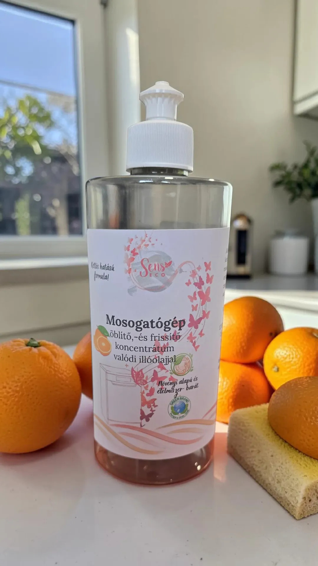 A SensEco Mosogatógép öblítő‑ és frissítő koncentrátum egy kettős hatású, természetes alapú öblítőszer, amely egyszerre biztosít ragyogóan tiszta edényeket és friss, édesnarancs illatot. A termék növényi eredetű összetevőket tartalmaz, mint a citromsav és tejsav, amelyek hatékonyan semlegesítik a lúgos mosogatószer‑maradványokat, és védik az edényeket és a mosogatógép alkatrészeit .